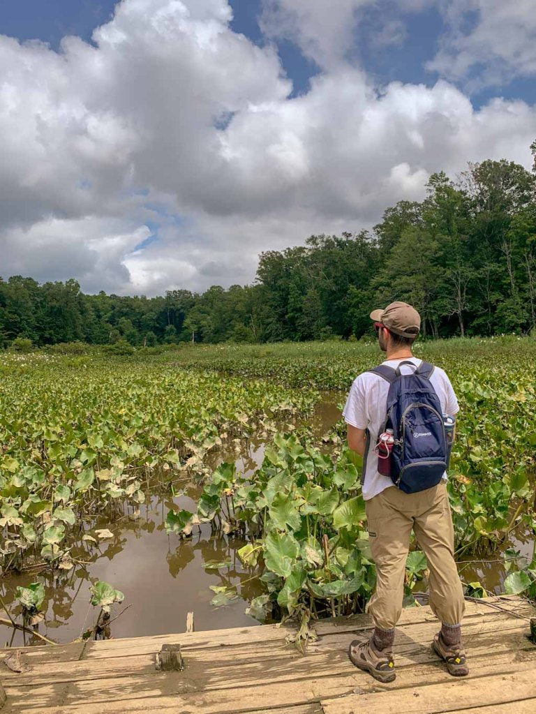 On a different trip, J and I did the full park loop from the visitor’s center down to the pier, about 5 miles. It’s mostly flat so it makes for a nice easy hike. Watch out for bugs though! It’s close to the water so they can get brutal. Most of the hikes in Jug Bay are easy which makes them great for the whole family. Every time we’ve gone, we’ve seen hikers and outdoor enthusiasts of all ages! If you’d really like to get a good workout, try adding on a few extra trails. But don’t forget to stop and enjoy the park around you! This place really is all about the fantastic ecosystem!
