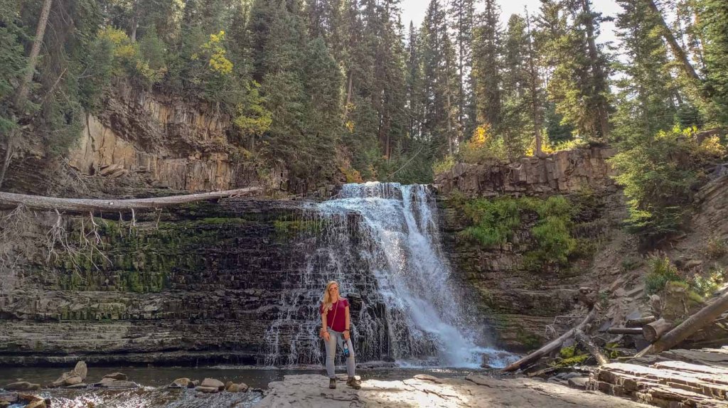 Ousel Falls is a delightful little trail just minutes away from the main town center of Big Sky. It’s maintained by the Big Sky Community Organization, a nonprofit that manages many of the local trails in the area. It’s clearly a popular trail judging by the ample parking lot and the wide, gravel trails. Also there are vault toilets in the parking lot so that’s always a plus. The trail starts with a bit of a steep decline, but there are railings and benches which make it accessible for most abilities. Along the way, you pass over the South Fork of the Gallatin River several times, offering lovely vistas and plenty of benches for relaxing in the beauty. Within no time, you’ve already reached the falls! Although several other hikers told us the cascade was very light, we still thought the falls were gorgeous. I loved that we could get so close to them! There were so many friendly people along the trail and several offered to take pictures of us. I’ll never get over how warm the camaraderie among hikers is!