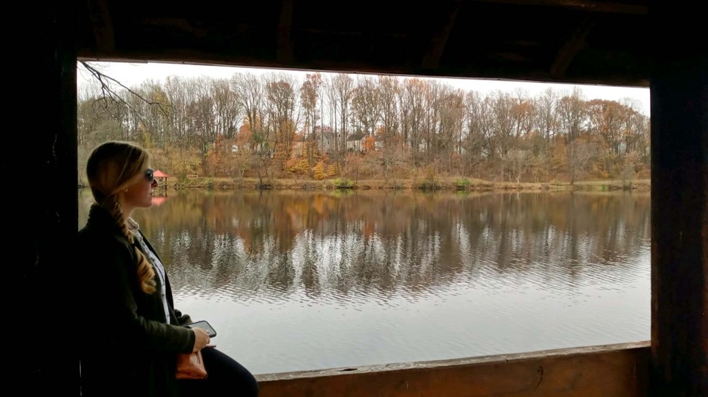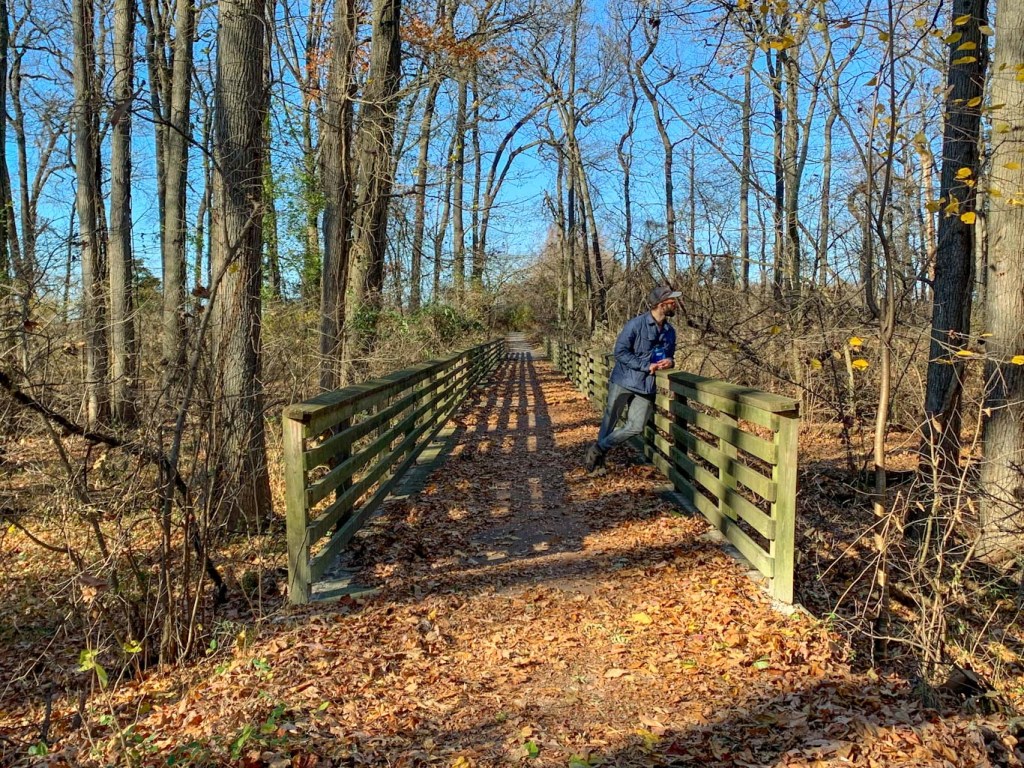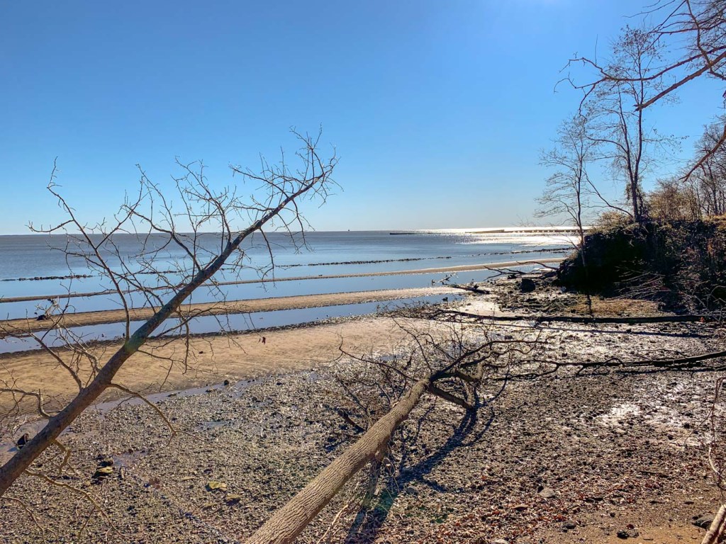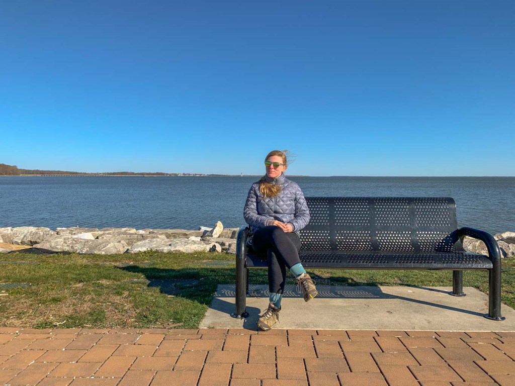 After the marshlands, you pass by one of the old park structures. Some people were inside exploring but I don’t mess with creepy abandoned buildings! The trail then leads along the water, offering expansive views of the Chesapeake Bay. If I hadn’t known better, I would have thought we were at the ocean! A really unique part of this park is the 1000ft Crystal Pier. It’s super impressive and we really liked walking all the way out to the end. Although it was way colder with no trees to block the wind! Aside from the pier, the latter half of the trail was not my favorite. Some of the path lead along the road and other parts were a mowed path through a field. I find grassy trails boring and difficult to walk on so I much preferred the marshland trail at the beginning.