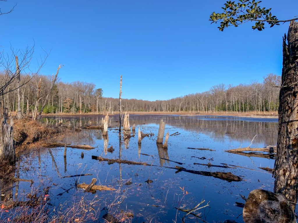 Because this park is right on the water, the trails are very flat and easily accessible. The first two miles of this hike is the most woodsy and was by far my favorite section. You start out on the Black Marsh trail which leads through the protected wetlands of the area. Please be aware that no bikes are allowed in this area! Throughout the wooded section, there are little educational signs about the wildlife in the area. We learned a lot about the birds of the area! Unfortunately, we didn’t see too many birds for ourselves.