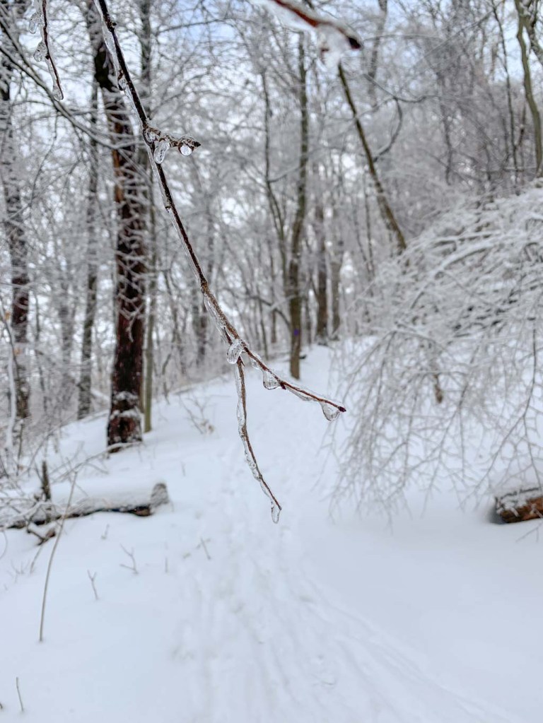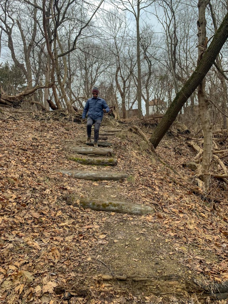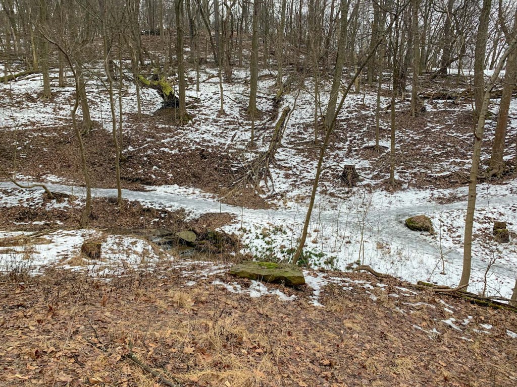 South Park is a pretty big place so we had a bit of a hard time figuring out what trails to tackle. There arenβt too many detailed trails on AllTrails (my go-to trail app). According to the County website, there are several different paved or wooded trails. We wanted to get a decent workout in so we opted to combine the Buffalo Ridge Trail and the Red and White Loop from AllTrails. The day we went out hiking was bitterly cold so we had a feeling that we wouldnβt be making it the whole 8 miles. So we parked in the middle of the park near a trail entrance. Well we thought it was near a trail entrance. We quickly found out that the trails in South Park could use some TLC. There are few, if any, trail signs and almost no blazes. We had to rely heavily on the AllTrails App to find the Buffalo Ridge trail. Even once getting to the right place (after several false starts), I had to have my phone out almost constantly to make sure that we were going the right way. Usually I donβt mind just finding my own way but in a park this size, I didnβt want to end up 4 miles away from our car when it was 20Β°F!