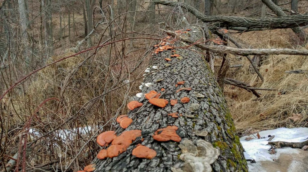 We both had mixed feelings about this park. At times the trail was very woodsy and peaceful but then suddenly you would have to cross a road. We had to cross the main road twice and it was very busy, making it pretty dangerous to cross. Overall, it was pretty easy to get lost and the trails intersected roads far too much for my liking. However, we did manage to see some nature, including a pileated woodpecker and some fungi! Oh and Justin found a tree friend.