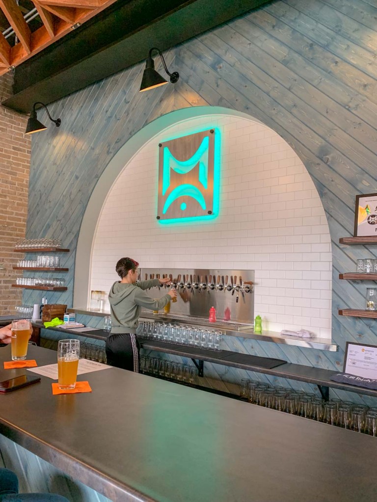 Brewery 33 sits right next to Lake Logan and about 15 minutes away from the Hocking Hills Visitor Center. They offer both indoor and outdoor seating and are very pet and kiddo friendly! Although there’s no kitchen, check to see if a food truck is on the schedule or get takeout from one of the restaurants nearby. We lucked out and had amazingly beautiful weather the day we visited. It was so nice to sit in the sun with a couple of beer and just relax. And the nice thing about traveling with company is you get to sample more! Any time we go to a brewery with my parents, we all taste each other’s beers. Brewery 33 had a lot of good stuff to offer, but my favorite by far was the Mingo Mango Sour. It’s their basic german sour brewed with fresh mango juice. I love a good fruity beer and this was the most refreshing brew I’ve had in a long time. The only thing that could have been better was if it was a slushie! My second favorite was the Pottery Pale Ale which was a perfect porch beer. We had a great time at Brewery 33 and we’ll definitely be back the next time we visit Hocking Hills!