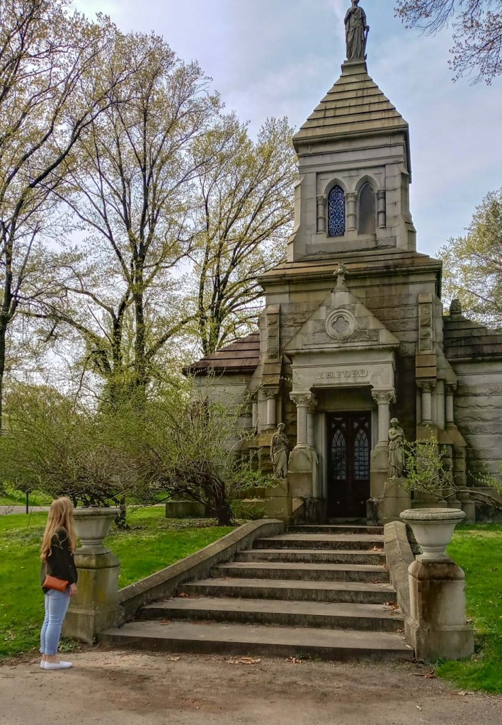 If you’re a history buff, there are a couple of really interesting people to read about. First is Dr. Charles Avery, an abolitionist who ran a stop on the Underground Railroad in Pittsburgh! Then was the huge memorial fortress to John B. Ford, the founder of Pittsburgh Plate Glass (now a little company called PPG Industries). Another fun one was the grave for Joseph Wainwright, an early brewmaster who used wild hops that grew along the river to make his own beer! His company eventually merged with others to become the Pittsburgh Brewing Company (makers of Iron City Beer!) . There’s so many more and if you are familiar at all with Pittsburgh, you’ll definitely see some familiar names popping up again and again. Names like Mellon, Schenley, Neville, McCandless, Scaife and more!