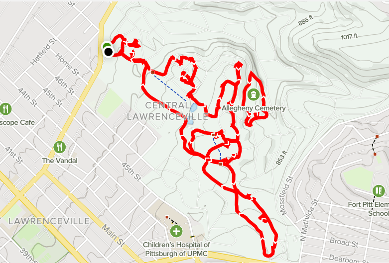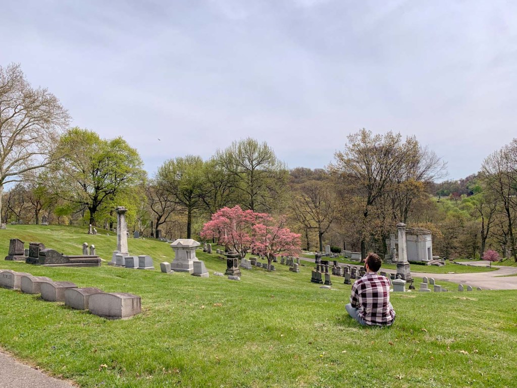 Okay so you might be thinking that a cemetery is a weird place to take a hike. In a lot of places, it’s not normal to stroll through a cemetery; you might feel that you’re disturbing the peace! But while also a resting place, Allegheny Cemetery is also a beautiful park that is full of nature, art, and history! In fact, the cemetery encourages people to visit by preparing self-guided tours with themes like Pittsburgh Mayors, African American History, Dynamic Women, and more! We opted to do Notable People which included famous industrialists, musicians, politicians, and military heroes. To find this and other self-guided tours, follow this link: https://mobile.webcemeteries.com/allegheny/26/Tours#tourId=701