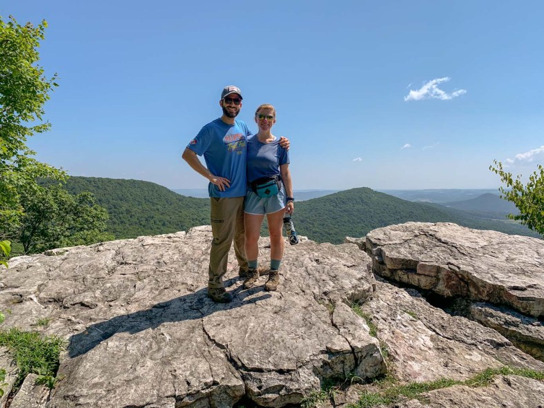 I’ll be honest, this was another tough hike for us! The humidity was pretty high and the majority of the elevation is gained in the first 1.5 miles of the hike. Take breaks when needed and bring plenty of water! I couldn’t believe how quickly we went through our water. One great thing about this hike was how low the foot traffic was! I thought this would be a popular spot on a weekend but we only saw one other couple. I also love the rock scrambles along the ridge of the mountain. I just wish that we had been able to do this hike later in the year. We could only catch glimpses of the vistas through the trees but I can imagine that it’s gorgeous in the fall/winter.
