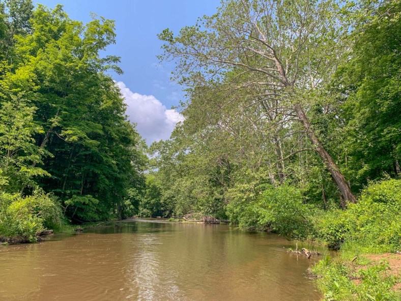 Wolf Creek Narrows is on the opposite side of the bridge from Miller Woods and is managed by the Western Pennsylvania Conservancy. It features mature hardwood forests, spring wildflowers, and is open for fishing along the creek. Although the WPC acknowledges this as one of their more popular locations, we still found plenty of solitude on a sunny summer day! When looking into this preserve, you may see that the maps only list one short loop. However, just recently an additional route has been added through the woods and then out into a field that almost doubles the amount of trail. Although the field section can be warm, it’s full of native wildflowers, which made for a lovely walk.