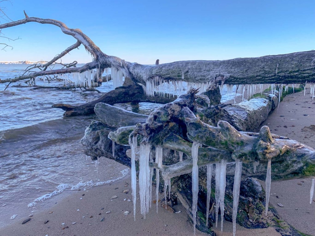 Calvert Cliffs should absolutely be your next hiking trip. While January might not seem like prime beach time, icy beaches are stunning in their own way! Calvert Cliff can get really busy in the summer so I highly encourage you to try something new and check it out in the winter. We went on an absolutely frigid day and I was blown away by how gorgeous the icy beach was. And the best part is you can warm up with a hot meal and a cold brew at the Ruddy Duck in Lusby. What a perfect way to check out Southern Maryland!